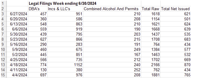 | Past 3 months of new openings ending June 2024. Averages are maintaining 600+ per week in the U.S.1st quarter and previous (2023), averages were in the 500+ per week range in the U.S.Net issued are after the removal of duplicates and unsecured/un-verified location confirmations. |